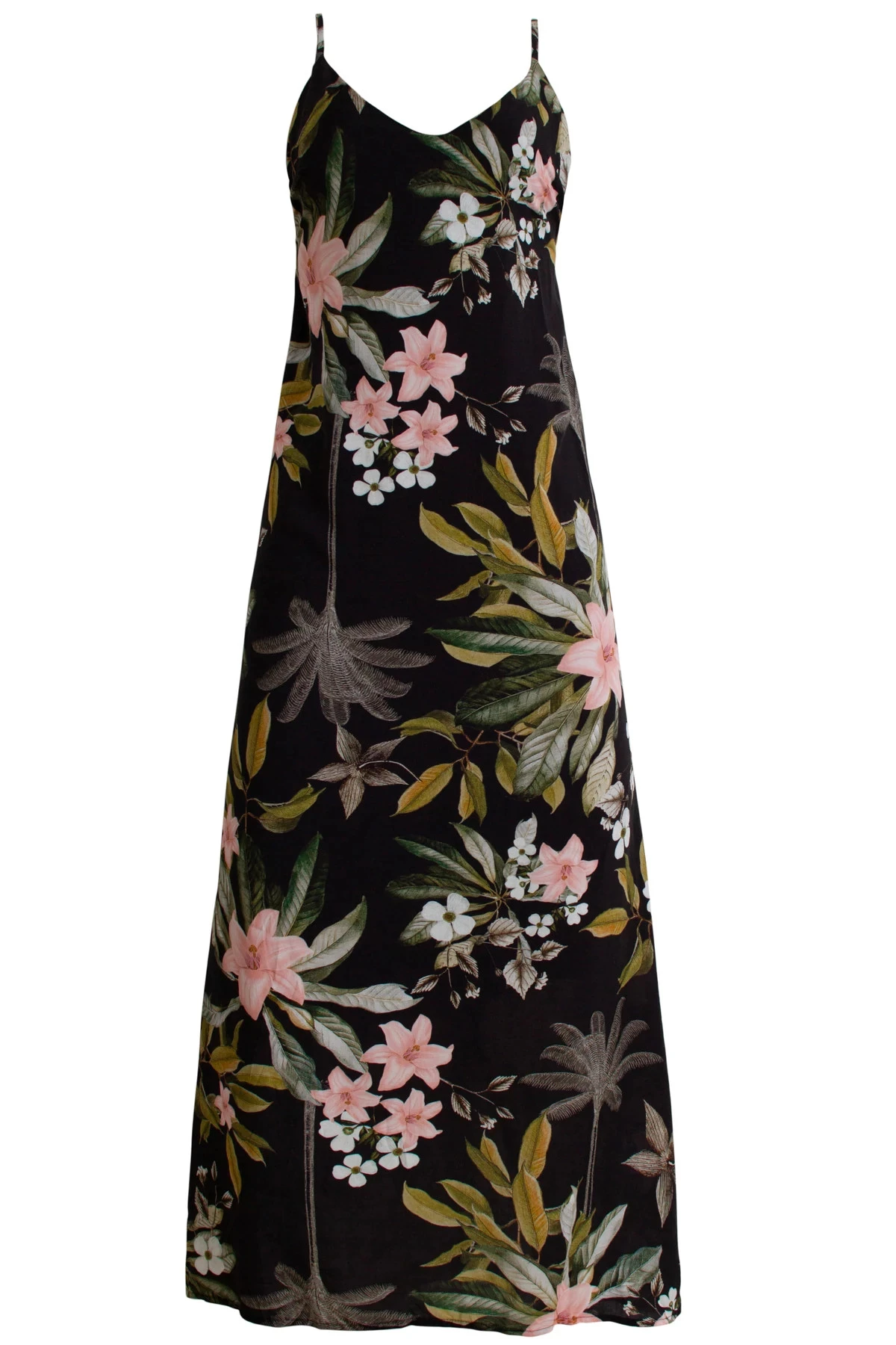 Amelia slip midi dress features an elegant floral pattern and offers an adjustable tie at back.