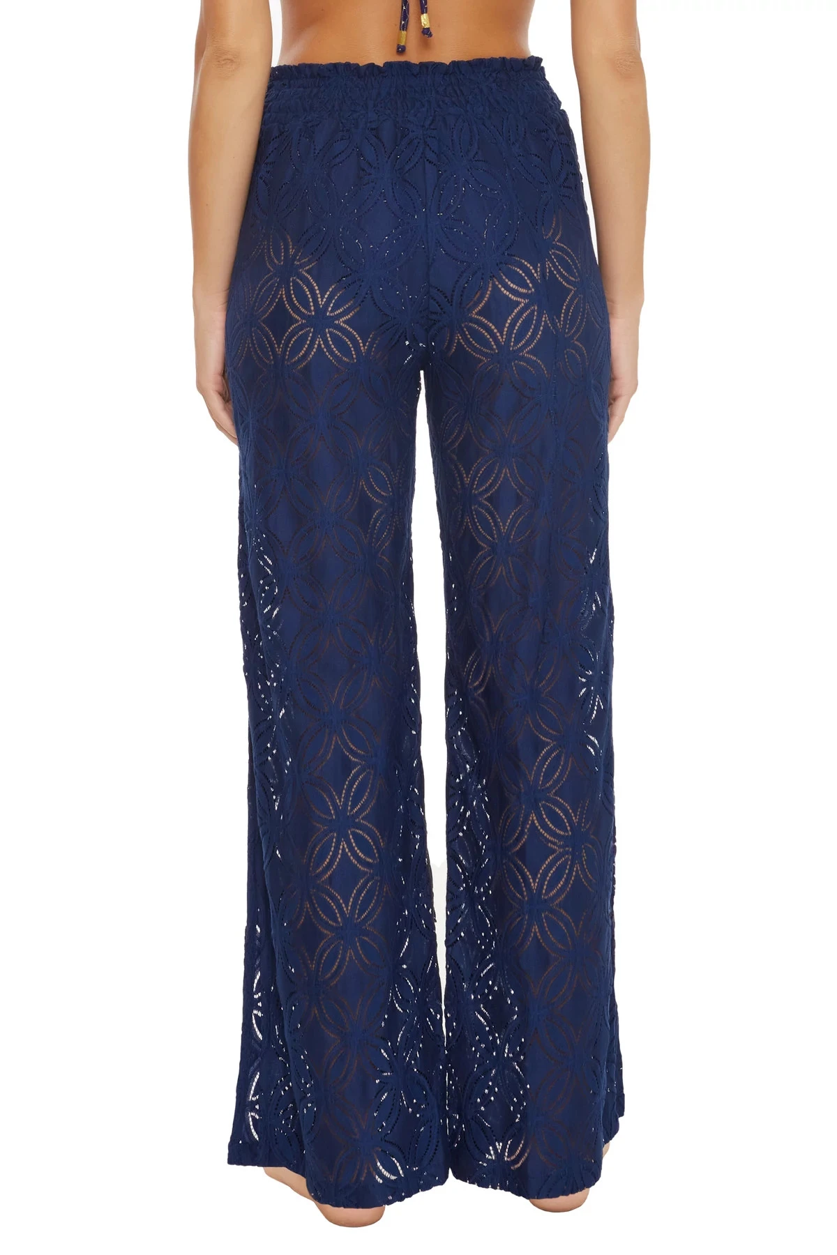 Pacheco crochet pants feature large side slits and offers adjustable ties at waist.