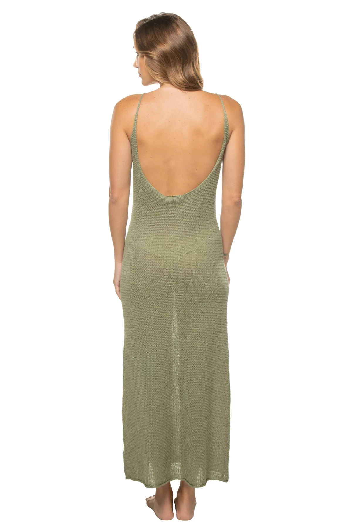 Tank maxi dress features a knit fabrication with a scoop neckline and spaghetti straps.