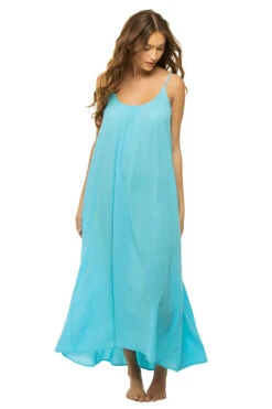 A semi-sheer, gauze maxi dress with a gathered scoop neck.