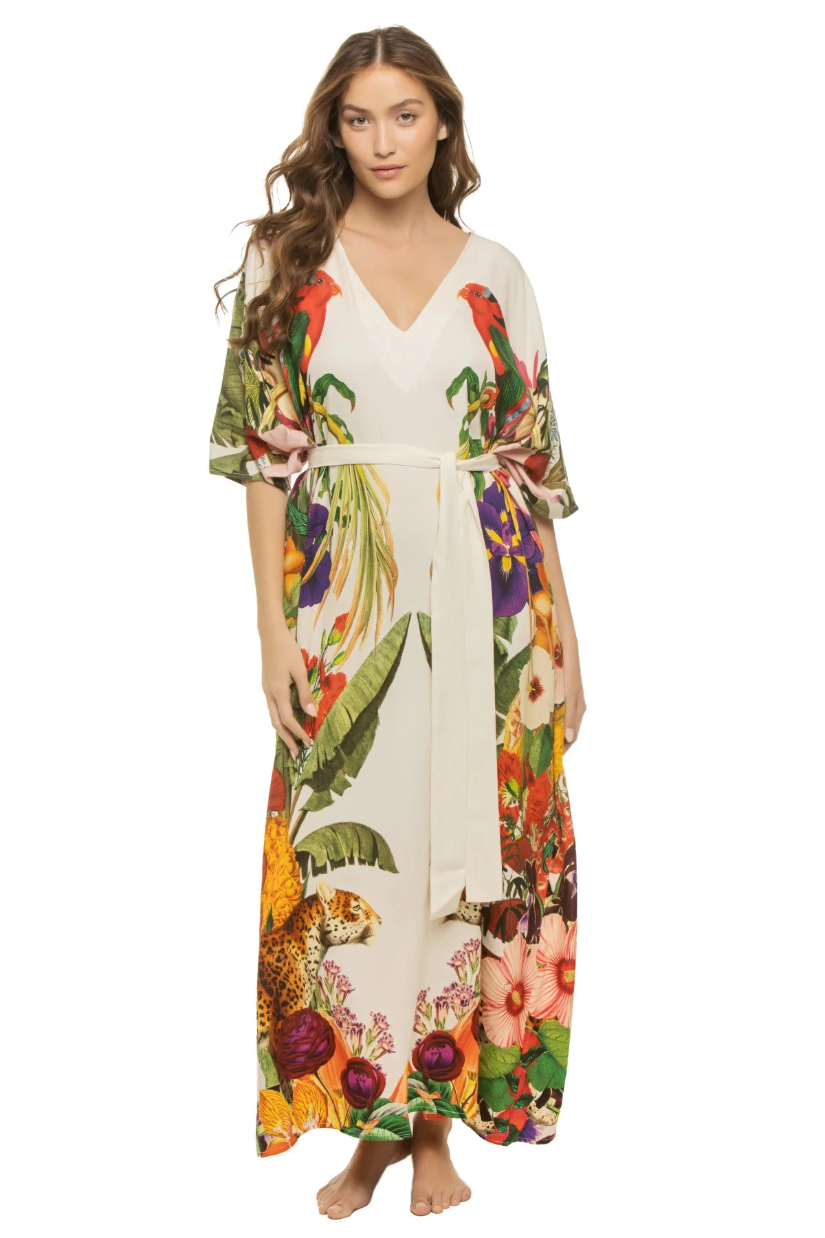 Xim maxi caftan features a symmetrically placed print and offers a v-neckline and open butterfly sleeves.